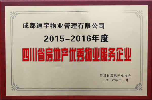 據悉,2016年10月,四川省房地產業協會下發了《關于開展2015-2016年度四川省房地產優秀企業評選活動的通知》,通宇物業積極參評,經企業評選委員會初審、專家復審、四川省相關領導審定等環節,公司憑借規范的內部管理體系,踐行“鐫刻細節 臻于至善”的服務理念,優秀的超甲級寫字樓、高端住宅、標桿工業園區管理業績及開創先河舉辦行業最高規格的大型物業管理高峰論壇獲得廣泛贊譽,并榮獲“年度優秀物業服務企業”殊榮。