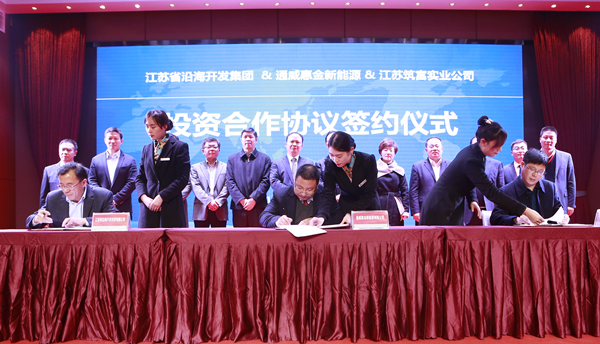 1月5日,江蘇省沿海開(kāi)發(fā)集團(tuán)有限公司總經(jīng)理丁建奇,中共灌云縣委副書記、縣長(zhǎng)朱興波,江蘇省筑富實(shí)業(yè)投資有限公司副總經(jīng)理?xiàng)罱 ⒘赫龞|一行到訪通威考察交流,并舉行了江蘇省沿海開(kāi)發(fā)投資有限公司、通威惠金新能源有限公司、江蘇筑富實(shí)業(yè)投資有限公司投資合作協(xié)議簽約儀式。十一屆全國(guó)政協(xié)常委、通威集團(tuán)董事局劉漢元主席,通威集團(tuán)禚玉嬌總裁,通威股份郭異忠總裁,通威股份副總裁兼華東戰(zhàn)區(qū)總裁王尚文,通威惠金新能源有限公司總經(jīng)理馮德志等領(lǐng)導(dǎo)熱情接待并出席簽約儀式。