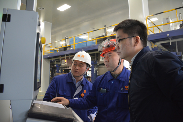 段雍董事長陪同謝毅董事長參觀永祥硅材料生產現場