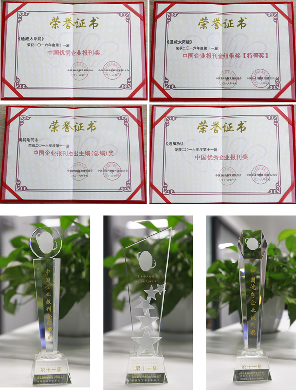 于2016年2月4日創(chuàng)刊的《通威太陽能》雜志首次參與評選,便一舉拿下 “中國企業(yè)內部報刊金紐帶獎(特等獎)”及“中國優(yōu)秀企業(yè)報刊獎”兩項最高獎項,更是對這張集團新能源板塊“文化新名片”品質、價值的最佳肯定和鼓勵。作為通威太陽能對內展示、溝通的良好平臺和載體,以及對外形象宣傳的重要媒介和窗口,自創(chuàng)刊以來,《通威太陽能》雜志不斷推陳出新,突出刊物的可讀性、真實性、行業(yè)性和專業(yè)性,憑借為企業(yè)發(fā)展作出的積極貢獻,獲得業(yè)界的廣泛認可與高度評價。