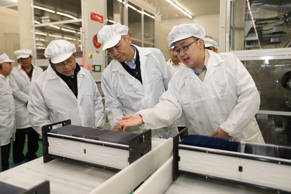 謝毅董事長向王海林主任一行介紹S1電池車間情況