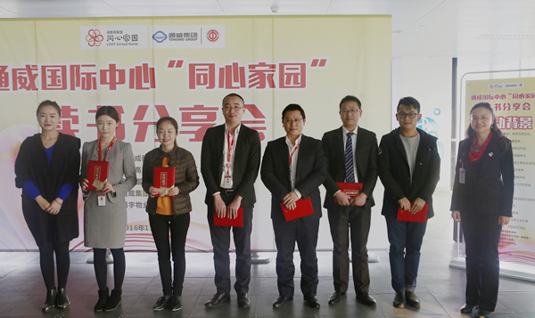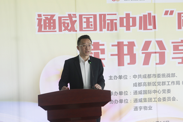 11月16日下午,由中共成都市委統戰部、成都高新區黨群工作局聯合主辦,通威國際中心黨委承辦,以“讀書勵志 崗位成才”為主題的通威國際中心“同心家園” 讀書分享會成功舉行。成都市高新區黨群工作局副局長張義薇,通威國際中心黨委書記、通威集團監事會主席陳星宇,通威集團工會主席李思宇出席,14名來自通威集團及入駐通威國際中心企業的員工代表參加活動。
