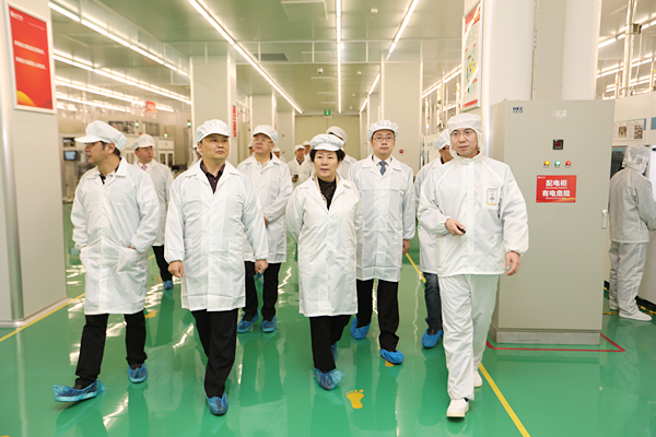 劉漢元主席陪同包瑞玲部長一行參觀S1電池生產車間