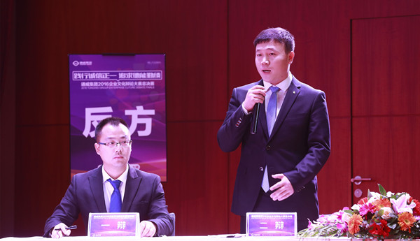 11月2日下午1時50分,第一場企業文化辯論賽火熱開啟。第一組正方辯論團隊由華東戰區四位辯手組成,反方由華北戰區四位辯手組成,雙方的辯題為“企業用人,員工的忠誠與能力誰更重要?”正方認為,忠誠比能力更重要,如今的飼料行業競爭激烈,商場如戰場。如果員工不忠誠,企業如何能用?能力在工作中可以培養,但忠誠卻是員工的核心;反方卻認為,企業用人,能力比忠誠更重要,能力直接為企業創造效益,進入一個企業的前提就是能力,一個企業重忠誠輕能力必將導致人員臃腫、人浮于事。