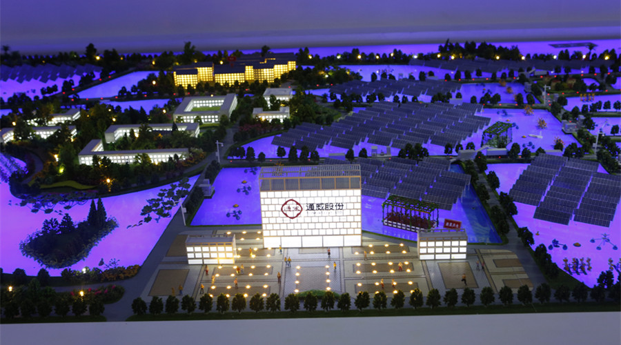 通威股份“漁光一體”智能運(yùn)營(yíng)中心通過(guò)圖文展示“漁光一體”創(chuàng)新模式、關(guān)鍵技術(shù)解析、全國(guó)項(xiàng)目分布及共享經(jīng)濟(jì)商業(yè)模式,并專門針對(duì)規(guī)劃建設(shè)中的通威“漁光一體”示范產(chǎn)業(yè)園區(qū)制作了電子沙盤,結(jié)合3D漫游視頻做了詳細(xì)詮釋,零距離呈現(xiàn)出一片生機(jī)盎然、青山綠水、鳥語(yǔ)花香的童話世界,讓人身臨其境、印象深刻并充滿向往。