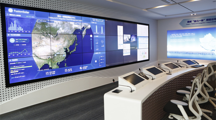 作為運(yùn)營(yíng)中心最為重要的智能監(jiān)控運(yùn)營(yíng)區(qū)域,結(jié)合華為“漁光一體”系統(tǒng)平臺(tái)進(jìn)行打造,不僅展示了智能漁業(yè)的前沿技術(shù),還體現(xiàn)了智能光伏方面的先進(jìn)管控水平。監(jiān)控區(qū)的“嵌入式”設(shè)計(jì)符合簡(jiǎn)約、創(chuàng)新的風(fēng)格,最大限度利用空間。據(jù)介紹,運(yùn)營(yíng)中心可以實(shí)時(shí)監(jiān)控全國(guó)所有“漁光一體”項(xiàng)目的運(yùn)營(yíng)情況與上網(wǎng)電量,發(fā)現(xiàn)問(wèn)題還可以遠(yuǎn)程操控項(xiàng)目,并可通過(guò)無(wú)人機(jī)進(jìn)行實(shí)地查看,及時(shí)通知項(xiàng)目負(fù)責(zé)人及時(shí)處理。