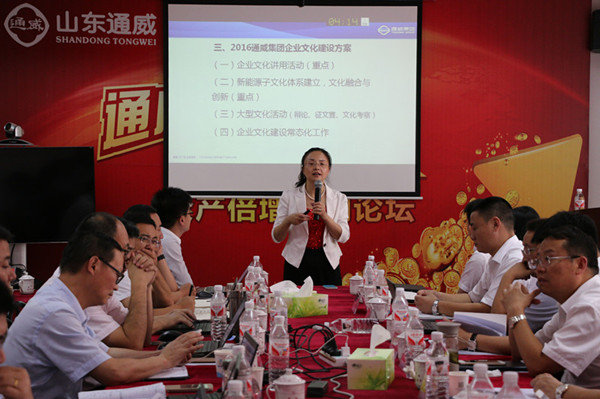 為有效推動華北戰(zhàn)區(qū)企業(yè)文化建設(shè)工作,近日,“2016年華北戰(zhàn)區(qū)通威文化暨新能源板塊文化帶動會”在山東通威成功舉行,通威集團工會主席李思宇出席并指導(dǎo)企業(yè)文化宣導(dǎo)工作。華北戰(zhàn)區(qū)各職能線總監(jiān)、各公司總經(jīng)理、市場及畜禽服務(wù)經(jīng)理、財務(wù)和品管經(jīng)理等近60人參會。