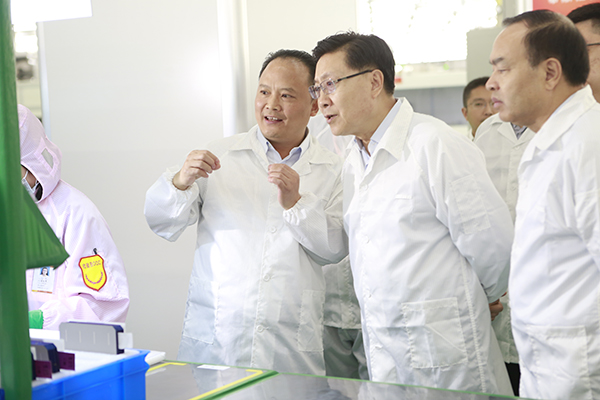劉漢元主席陪同王東明書記一行參觀S1生產車間