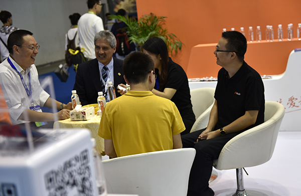 外國(guó)嘉賓在“好主人”展區(qū)熱情交流