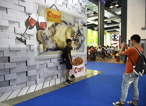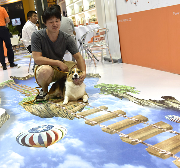 觀展人員帶領(lǐng)自己愛(ài)寵在現(xiàn)場(chǎng)拍照