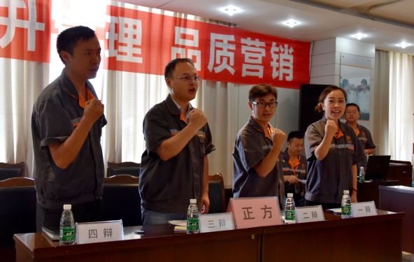 本次辯論賽具有“三高”特征,一是比賽規(guī)格高。作為永祥股份辯論決賽,本次比賽是對各公司、分廠前期辯論大賽成果的進一步檢閱;二是評委級別高。永祥股份經營管理班子、各子公司高管親臨現(xiàn)場并擔任評委,相關中干親自擔任啦啦隊長,為隊員們加油鼓勁;三是辯手水平高。參加辯論大賽的選手均是通過層層選拔,脫穎而出的佼佼者,也是在“講用活動”中表現(xiàn)突出的員工,在日常企業(yè)文化建設中有較豐富的實踐經驗。