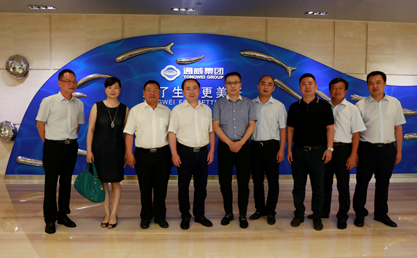 7月26日,中共南充市蓬安縣縣委書記蒲國,縣委常委、宣傳部長王勇,縣委常委陳建霖,發改局局長唐琴,投促局局長李博文等一行蒞臨通威集團參觀考察。通威集團禚玉嬌總裁,集團副總裁管亞偉熱情接待并座談,通威惠金新能源有限公司總經理馮德志,國務院特殊津貼專家、通威首席水產專家吳宗文陪同接待。