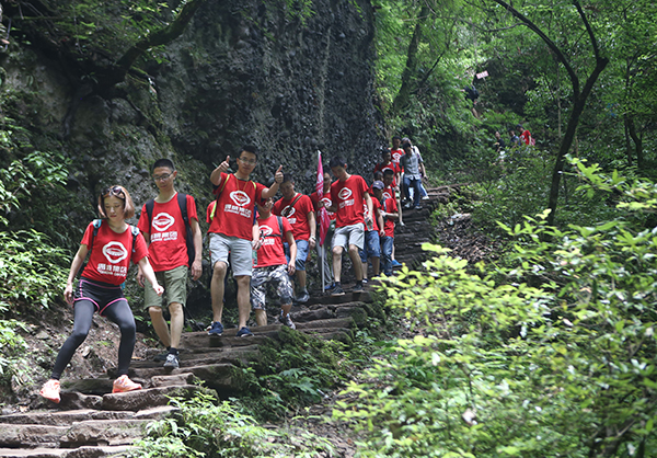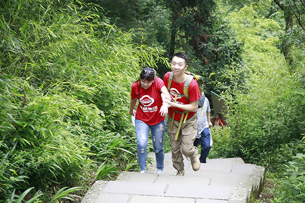 上午9點,登山拓展訓練在青城后山正式拉開序幕,100余名員工隨機分為十組,斗志昂揚地從山腳出發,沿著曲折的登山步道往山頂沖刺。按照拓展訓練要求,各小組全體成員一路上不僅需要高度的團隊協作快速前進,還必須在指定的地點完成規定任務。經過三個半小時的奮力攀登,十支隊伍陸續成功登頂。艱苦的攀登過程中,大家挑戰自我極限,磨練意志,雖汗水淚水交織,打濕衣衫,但在大家高效的協作中,深刻地感受到了團隊的力量,并圓滿完成既定任務!