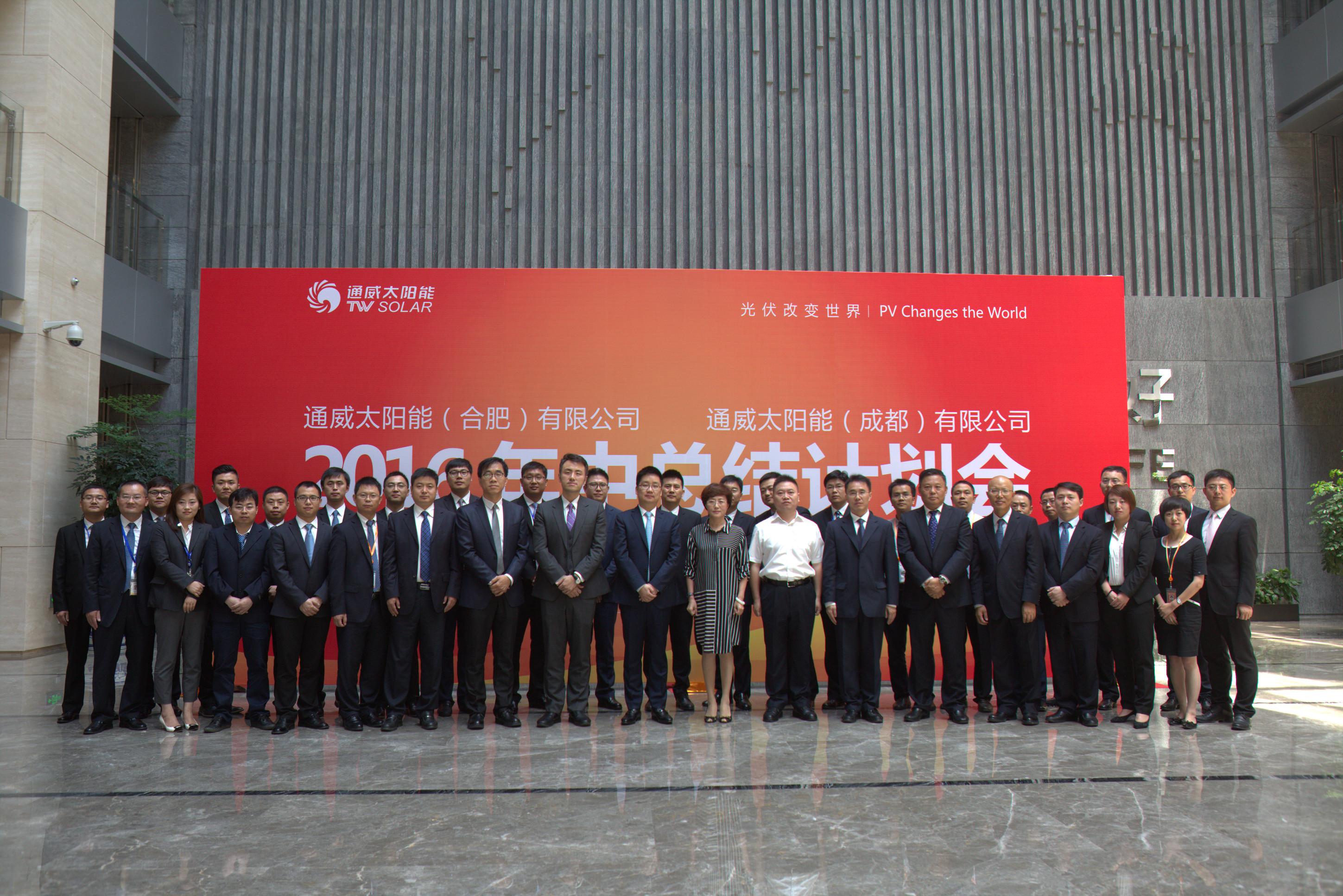 禚玉嬌總裁與通威太陽能(合肥、成都)有限公司全體參會員工合影留念