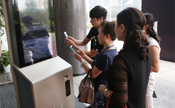工作人員在簽到臺迎賓