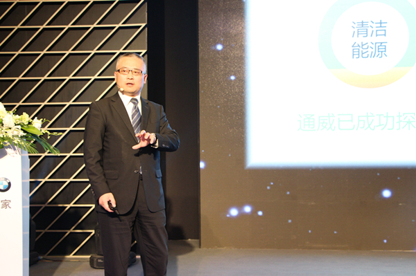 論壇上,胡總以“做中國現代漁業的創新者”為主題,就通威“漁光一體”創新模式作主題演講。胡總指出,我國擁有的養殖水面高達1.2億畝,若將其中4500萬畝精養魚塘建成漁光一體電站,將達1200GW-1500GW,相當于2015年全國發電裝機總量,年發電收入高達1.2萬億-1.5萬億。“漁光一體”模式正是依托通威在水產行業超過30年經營累積的豐富資源,以及新能源產業的發展優勢,將光伏發電與養魚有機結合,不僅不占用寶貴土地資源,還能在產出清潔能源的同時,大大提高養殖戶收益,作為中國乃至全球唯一一家同時涉足農業和新能源光伏產業的龍頭企業,真正實現農業和光伏高效協同發展,這一全新模式勢必會引領并實現清潔能源與水產養殖轉型升級的革命。
