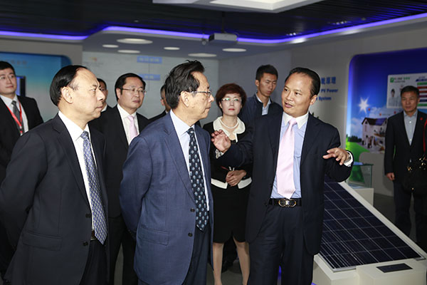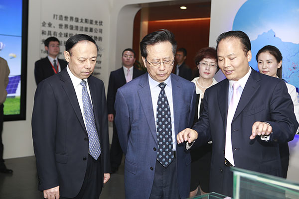 昌智副委員長一行首先參觀了位于通威國際中心裙樓四樓的集團(tuán)體驗(yàn)中心,對通威32年來的發(fā)展歷程進(jìn)行了詳細(xì)了解,重點(diǎn)聽取了通威光伏產(chǎn)業(yè)鏈延伸及打造情況,并對現(xiàn)代化的體驗(yàn)中心留下了極為深刻的印象。期間,昌智副委員長對全體通威人的創(chuàng)業(yè)歷程,以及通威以農(nóng)業(yè)、新能源為雙主業(yè)發(fā)展所取得的卓越成就給予高度肯定。