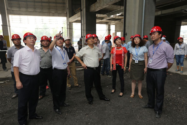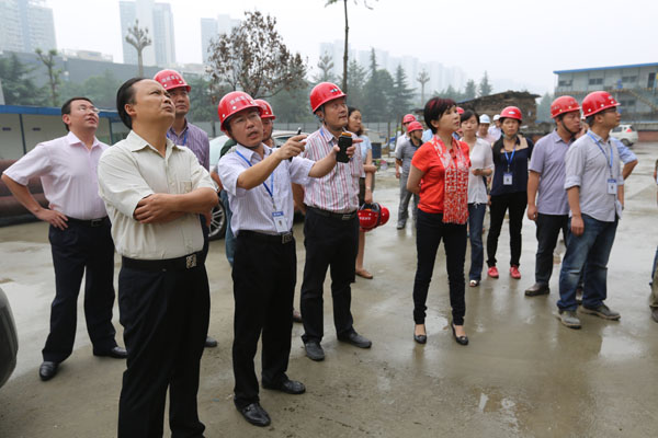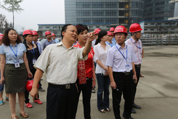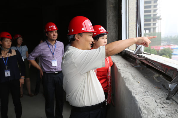 當(dāng)天下午兩點(diǎn),劉主席、管董事長等一行準(zhǔn)時(shí)來到項(xiàng)目部,一下車即走進(jìn)了正在施工作業(yè)的通威國際中心項(xiàng)目工地。中秋、國慶節(jié)將至,大家的工作生活安排得怎么樣?劉主席與管董事長十分惦念。踏著泥濘的小道,劉主席、管董事長一行與工友們親切握手、親熱談心,把代表集團(tuán)總部的關(guān)心與問候帶給了在場的每一位員工。