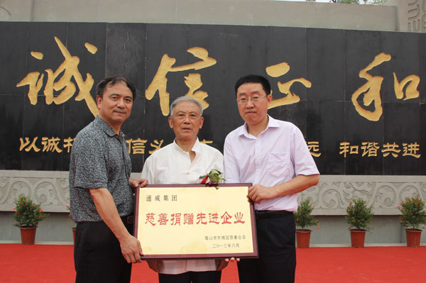 剪彩儀式上,眉山市東坡區(qū)黨委副書記嚴(yán)明宇向通威集團(tuán)授予“慈善捐贈(zèng)先進(jìn)企業(yè)”的榮譽(yù)牌匾。陳總代表劉漢元主席對(duì)文化廣場的竣工表示祝賀,他介紹,通威作為發(fā)源于眉山市永壽鎮(zhèn)的企業(yè),劉主席作為永壽鎮(zhèn)發(fā)展起來的著名企業(yè)家,為能積極支持和參與家鄉(xiāng)建設(shè)感到高興,希望永壽鎮(zhèn)用好捐贈(zèng)資金,全力推動(dòng)相關(guān)項(xiàng)目建設(shè),真正將永壽通威文化廣場施工好、建設(shè)好、使用好、管理好,真正為家鄉(xiāng)父老提供一個(gè)休閑健身的一流場所。東坡區(qū)、永壽鎮(zhèn)黨政領(lǐng)導(dǎo)對(duì)劉漢元主席及通威集團(tuán)對(duì)家鄉(xiāng)及眉山市經(jīng)濟(jì)、文化和社會(huì)建設(shè)等各方面長期給予的寶貴支持表達(dá)了感謝,并表示將切實(shí)落實(shí)好捐贈(zèng)資金,加強(qiáng)永壽鎮(zhèn)文化建設(shè),加快興建文化基礎(chǔ)設(shè)施。