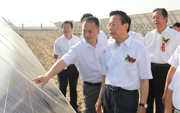 揭牌儀式上,劉漢元主席對阜康市1MWp光伏發電項目進行介紹,昌吉州常務副州長黃志忠致辭,陳昌智主席與栗智委員長共同揭牌。隨后,劉漢元主席陪同陳昌智主席參觀了光伏發電站,對電站的各項設施的功能以及修建歷程進行了詳細地介紹。