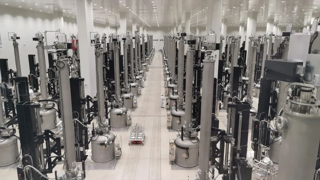 在永祥光伏科技,15GW單晶拉棒切方項目單晶生產車間,一排排單晶爐高速運轉,一批批單晶拉棒新鮮出爐;不斷產出的單晶拉棒再由無軌式自動化AGV小車運送至機加車間進行切方整裝,最終光亮如鏡的單晶方棒被運往下游企業并制作成太陽能電池。
