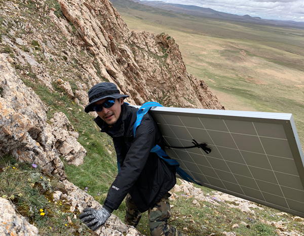 胡歌與綠色江河志愿者共同在青藏高原安裝光伏電站