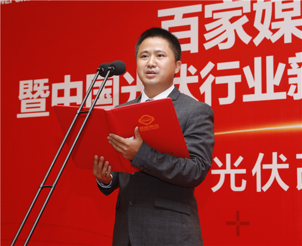 (聯(lián)盟發(fā)起媒體代表、執(zhí)行秘書長、黑鷹光伏總編輯 李文友宣讀倡議書)