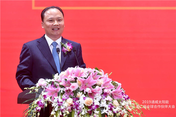 通威太陽能董事長謝毅在致辭中首先對蒞臨現場的領導嘉賓致以衷心的感謝,并表示,通威太陽能從成立至今,在各位光伏同行、合作伙伴的鼎力支持下,創造了一個又一個的行業記錄。公司現擁有13GW電池產能,是全球最大的晶硅電池企業,電池出貨連續2年全球第1。在劉漢元主席的帶領下,通威成立之初,就把與供應商、與客戶的合作共贏放到第一位。劉主席早在二十多年前就提出:“如果大家彼此信任,成為真正手牽手、背靠背的好朋友、好伙伴、好兄弟,那通威一定是五分五厘為對方想、四分五厘為自己想,一定不是把每一個銅板全部賺進自己的腰包。”不論是未來巨大的光伏市場,還是今天通威太陽能所取得的成績,都離不開政府領導的大力支持,離不開今天在座的各位光伏同行和合作伙伴的鼎力相助。2019年末,通威電池產能將超過20GW,2020年末電池產能規模將超過30GW,但通威永遠“店大不欺客、客大不欺店”。通威太陽能5年來的風清氣正、正大光明成為光伏行業的“通威現象”,未來的合作中,通威和每一位通威人將永遠堅守這份信念,與大家攜手共進,開創更加美好的未來。
